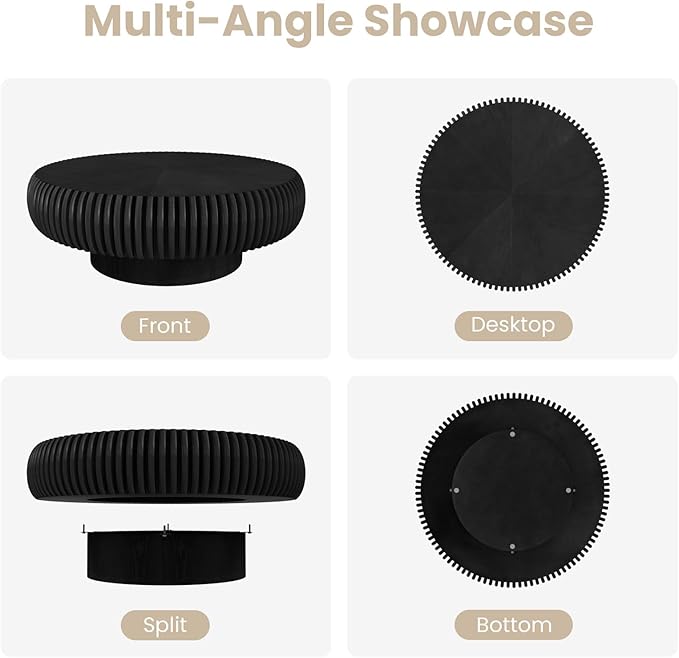 - Strong Structure: Crafted from high-density MDF, this wood coffee table resists warping and scratches, ensuring long-term durability. The non-slip foot pads stabilize the living room table on hardwood or carpet, preventing scratches and slips. The fluted panel design not only enhances aesthetics but also reinforces the drum coffee table's structural integrity