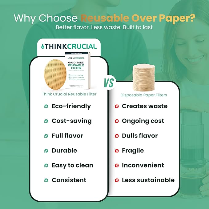 Gold Reusable Disc Filter Compatible with AeroPress XL Coffee Maker – Titanium-Coated Stainless Steel, Washable, Eco-Friendly, Travel Ready – Fits AeroPress XL Only - By Think Crucial