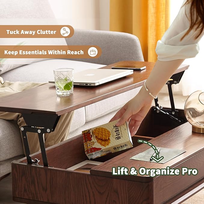- 【Gentle and Secure Closure】 Enjoy a coffee table that prioritizes safety and functionality. When closing the lift function, the table descends slowly and smoothly, preventing any collision damage. This design also ensures child safety by minimizing the risk of fingers getting caught during play. Rest assured knowing that this coffee table with lift top provides a secure environment for everyone.
