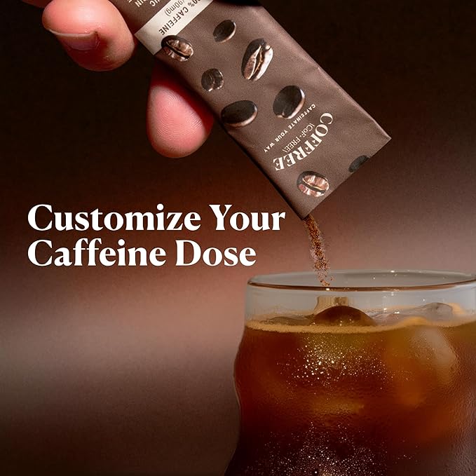 COFFREE Organic Instant Coffee Packets Variety Pack - Convenient Single Serve Coffee Sticks, Mold Free, Low Acid Arabica for On-the-Go Energy - 0–150% Caffeine Options for Hot or Cold Brew - 24 Count