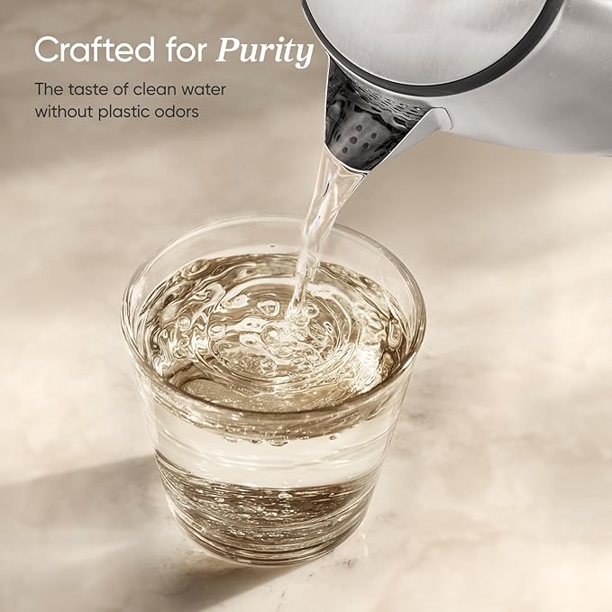 - ๐ฏ๐ฌ๐ฐ ๐๐ผ๐ผ๐ฑ-๐๐ฟ๐ฎ๐ฑ๐ฒ ๐ฆ๐๐ฎ๐ถ๐ป๐น๐ฒ๐๐ ๐ฆ๐๐ฒ๐ฒ๐น: 100% stainless steel interior. Plastic-freeโspout, inner lid, and filter all made of 304 stainless steel.
