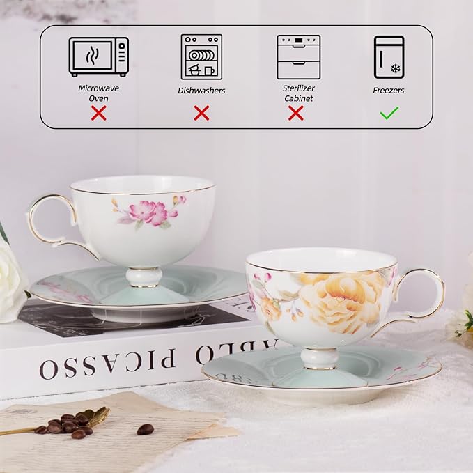 - Thoughtful Gift for Tea Enthusiasts Comes as a set of 2 cups and saucers, making it a charming gift for birthdays, Mother’s Day, or anyone who appreciates elegant tableware.