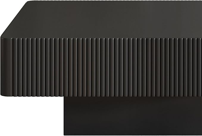 31.6 Inch Square Drum Coffee Table, Modern Handcraft Fluted Drum Coffee Table, Wooden Square Center Table Cocktail Table with Stable Pedestal for Living Room Apartment (Black)