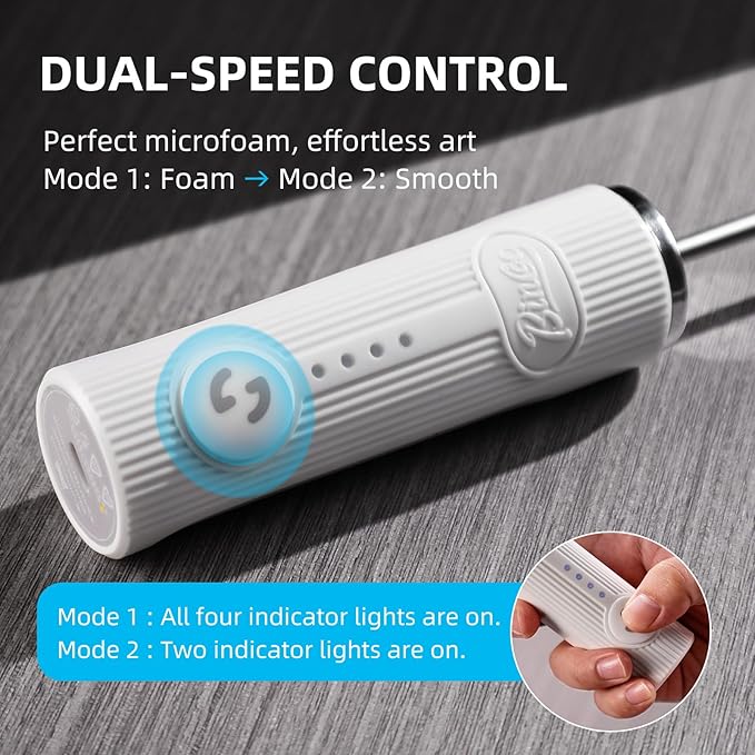- 【USB-C Fast Charging & 2-Speed Control】 Enjoy modern convenience and complete control. The USB-C rechargeable battery offers quick and easy charging. A clear LED indicator keeps you informed of the battery status, so you're never caught off guard. Choose between two speed settings: low for gentle mixing and warming, or high for powerful, rapid frothing.