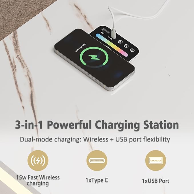 - 【3-in-1 Fast Charging Station】This smart coffee table for the living room features 15W wireless fast charging, dual USB-C/USB ports, and powers laptops, headphones, game consoles, and other devices—no cable clutter.