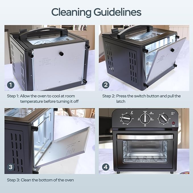 - Effortless Maintenance: Designed with user convenience in mind, this oven is easy to maintain. The smooth, easy to pull-down built-in crumb tray can effectively captures debris, preventing oil stains and residue from adhering to the inner walls. Transforms post-meal cleanup into a quick and effortless task, saving you both time and effort while keeping your oven in good condition.