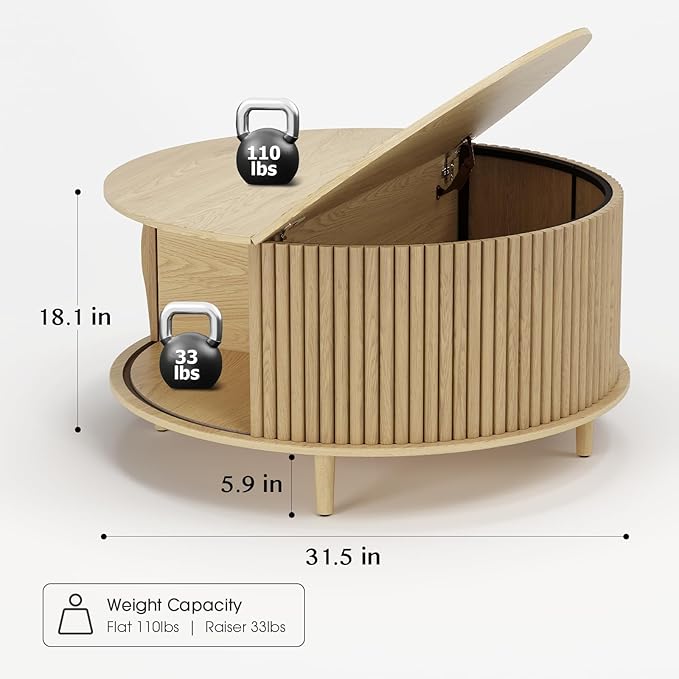 - Smooth Sliding Door: Slide open the smooth door to access an additional concealed area. Perfect for storing magazines, blankets, or board games, this circle coffee table maximizes storage in compact spaces