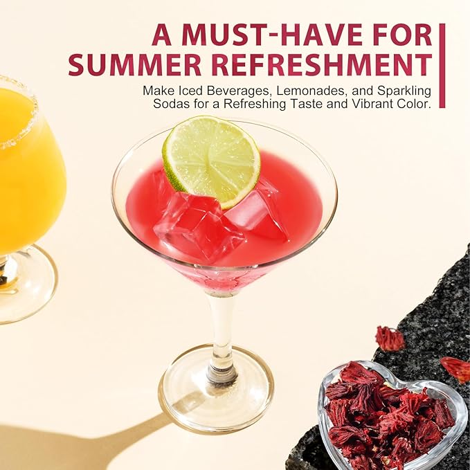 - Versatile Brewing: Enjoy hibiscus tea your way whether you prefer it steaming hot with a touch of honey or chilled over ice for a refreshing drink. Soeos Hibiscus Flowers steep beautifully for both hot and cold preparations. Their bold, tangy flavor pairs well with citrus slices, mint leaves, or spices like cinnamon and ginger.