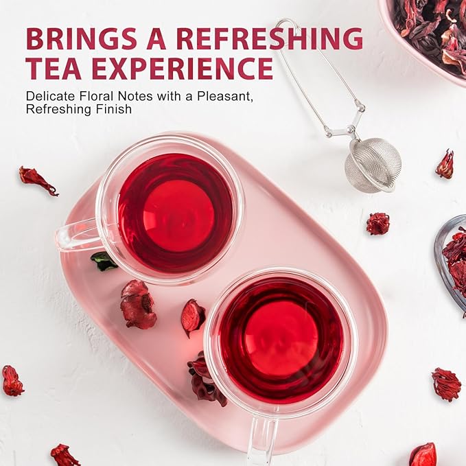 - Aromatic Distinctive Flavor Profile: Soeos Hibiscus Flower Tea delivers a bright, tangy taste that’s both refreshing and deeply aromatic. The natural floral scent fills the air as you brew, while the bold tartness on your palate makes it a standout among herbal teas. Whether you enjoy your teas strong or lightly steeped, this hibiscus tea allows you to tailor each cup to your preferences. Its unmistakable flavor brings a touch of tropical essence to your day.