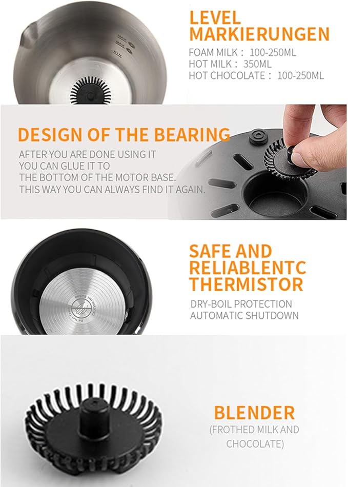 - 【Effortless Frothing and Heating】The Electric Milk Frother boasts a powerful 500W motor that quickly froths up to 250ml of milk or heats 350ml for your favorite beverages, ensuring you enjoy café-quality drinks at home.