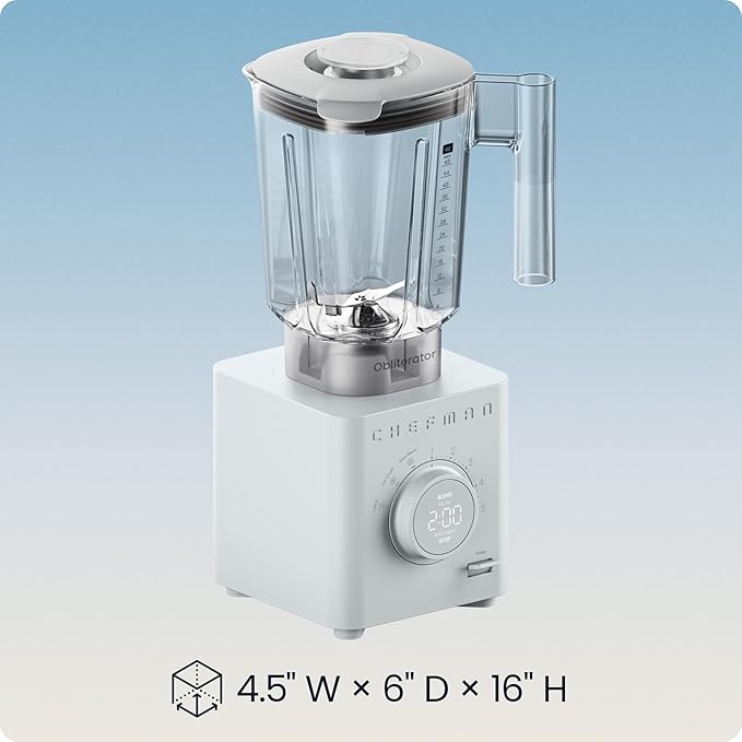 Chefman Obliterator 48 oz Countertop Blender for Smoothies, 1380W Motor to Crush Ice, Nuts, and Frozen Fruit with Stainless Steel Blade, Auto Blend Function, Includes Tamper and Scraper