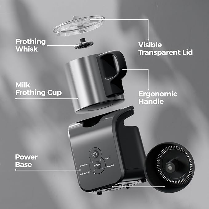 - Barista-Level Frothing in Minutes: Our powerful whisk and heating system deliver cafe-quality microfoam in just 1-5 minutes. Enjoy silky-smooth foam that holds its shape perfectly.