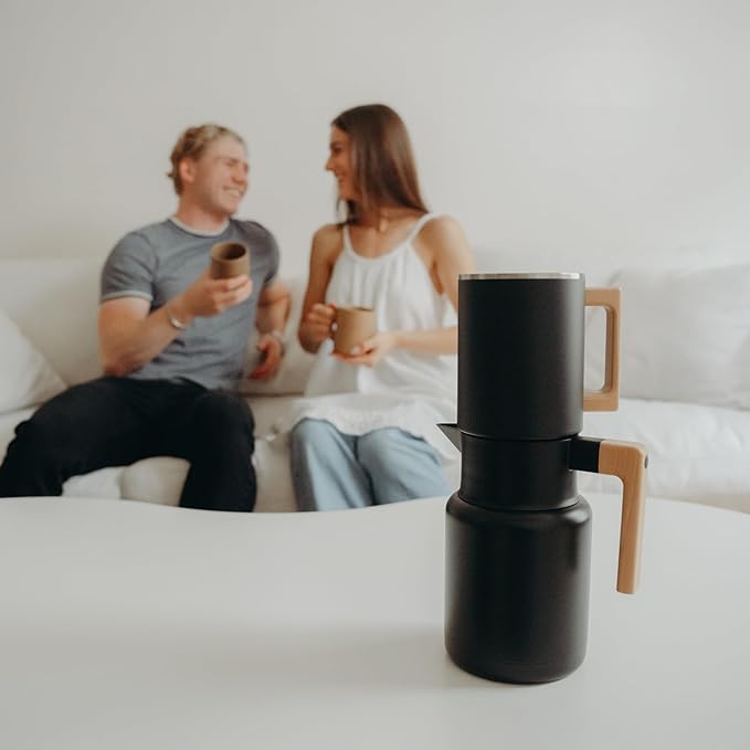 HASTINGS 50 Oz Pour Over Coffee Maker Set with Double Layer Reusable Stainless Steel Filter 8-Cup and Wood Handle - Dual Wall Heat Resistant Drip Coffee Brewer, Pour Over Coffee Dripper Carafe, Black