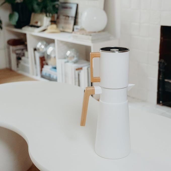 HASTINGS 68 Oz Pour Over Coffee Maker Set with Double Layer Reusable Stainless Steel Filter 8-Cup and Wood Handle - Dual Wall Heat Resistant Drip Coffee Brewer, Pour Over Coffee Dripper Carafe, White