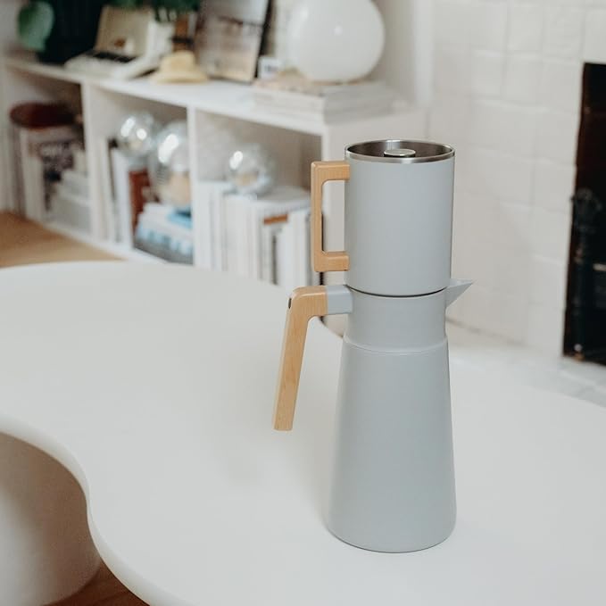 HASTINGS 68 Oz Pour Over Coffee Maker Set with Double Layer Reusable Stainless Steel Filter 8-Cup and Wood Handle - Dual Wall Heat Resistant Drip Coffee Brewer, Pour Over Coffee Dripper Carafe, Gray