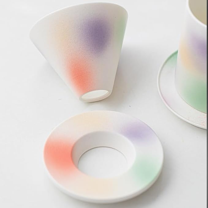 Handmade Color Rainbow Pour Over Coffee Maker Set, Ceramic Coffee Dripper Brewer Heat Resistant Coffee Pot Decanter ACM05C