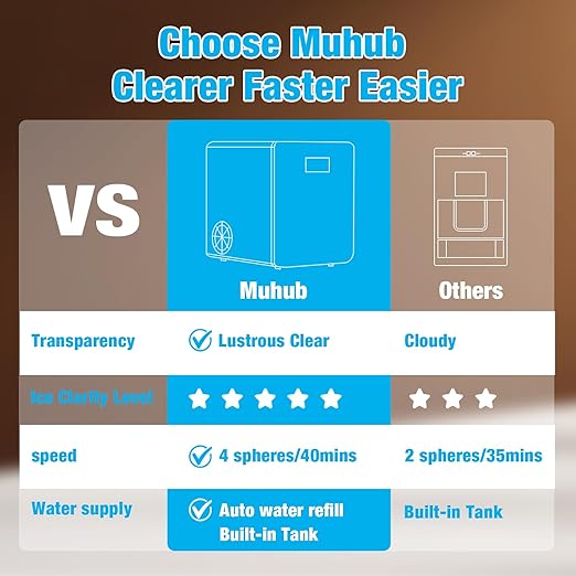- 【High-Efficiency Ice Production】Our ice maker makes 150 ice balls per 24 hours (1.6L/1.69 Qt water tank) with fast-freezing technology – enjoy ice balls in as little as 6-8 minutes! Perfect for parties, bars, or daily use.