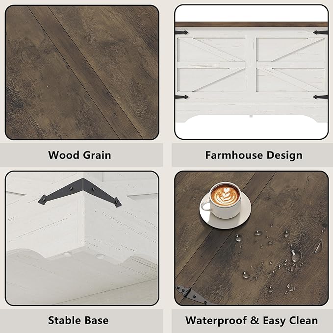- Farmhouse Style: The square coffee table classic farm barndoor and retro black metal accents make it a versatile addition to any living room.the table adopts a 35.4" x 35.4" large size design, which is very suitable for large living rooms