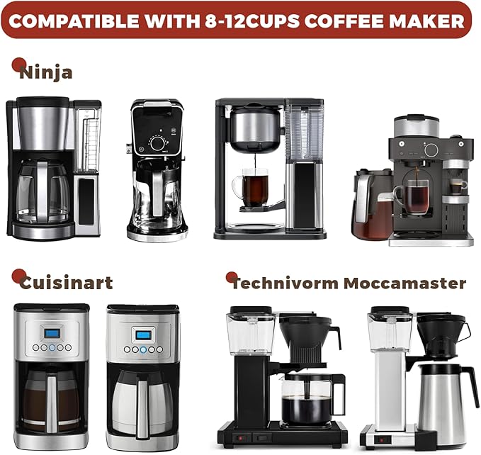 - Compatible with Ninja Coffee Maker: 8-12 cups cone coffee filters fit the Ninja CE251 Coffee pro brewer, Ninja CFP307, CFP101 dualBrew pro coffee brewer, Ninja CM401, CFN601 coffee maker. No.4 coffee filters are compatible with the Cuisinart DCC-3400NAS, DCC-5570NAS, and DCC-3400 coffee makers, as well as the Technivorm Moccamaster KBGV 59691 KB, 79112 KBT, 79212 KBTS, and 79312 KBGT coffee brewers. Also works as #4 cone filter for cone Coffee Dripper.