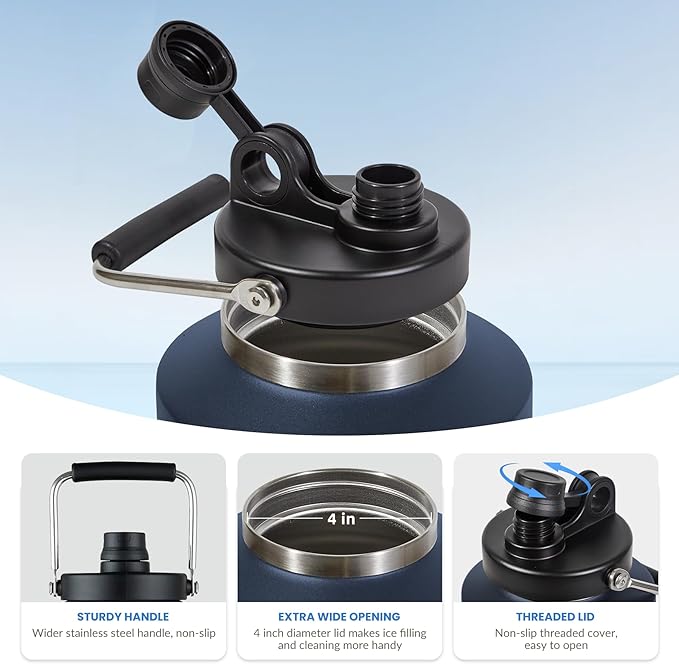 1 Gallon Water Jug Bottle Insulated with Straw, 128oz Stainless Steel Water Bottle Jug Wide Mouth Double Vacuum Dishwasher Safe BPA Free for Hot & Cold Drinks Navy Blue
