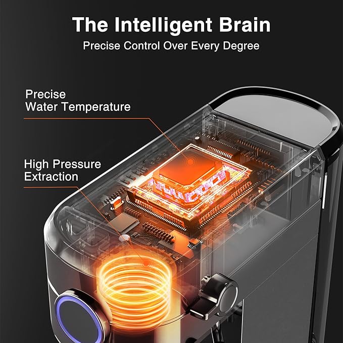 - 【Smart Temp Control, Safe & Easy to Clean】 This coffee maker uses PCB electronic control technology to precisely regulate water and steam temperatures, ensuring stable extraction and frothing. It also features overheat and overpressure protection for safe, reliable use. The detachable frothing nozzle and drip tray make cleaning and maintenance easy, ensuring consistent performance even with long-term use.