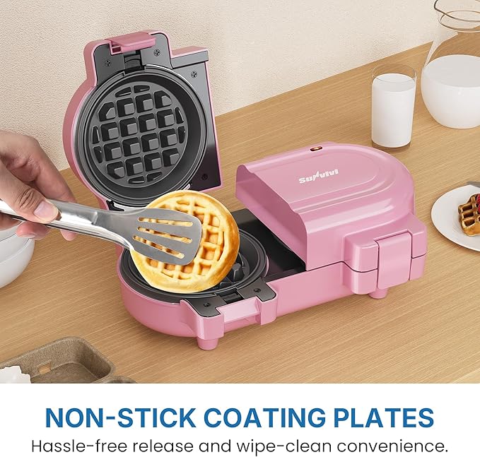 Double Waffle Maker Featuring Dual Removable Nonstick Plates, One-Button Single or Dual-Side Operation, Rapid Preheating with Dual Indicator Lights, Easy-to-Clean and Durable Design,Pink