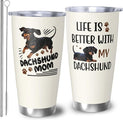 - 【UNIQUE DACHSHUND MOM GIFTS THAT STAND OUT FOR DACHSHUND LOVERS】 Tired of generic dachshund gifts? This RUIYIMOEO mile white dachshund travel mug features one-of-a-kind art: a running dachshund and a pup curled on the “LIFE IS BETTER WITH MY Dachshund” quote—making it a standout dachshund lover gift. It’s more than a dachshund cup; it’s a personal tribute to her pup, perfect for birthdays, holidays, or just to say “I see your love.”