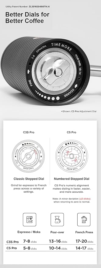 TIMEMORE C5 Pro Manual Coffee Grinder Capacity 30g with CNC Stainless Steel Conical Burr - Internal Adjustable Setting,Double Bearing Positioning (C5 Pro Matte Black)