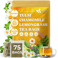 FreshDrinkUS, Premium 75 Tea Bags Tulsi Chamomile Lemongrass Herbal Tea | Blend with Holy Basil, Chamomile Flowers & Lemongrass Leaves โ Naturally Caffeine-Free, Soothing Herbal Infusion. Vegan