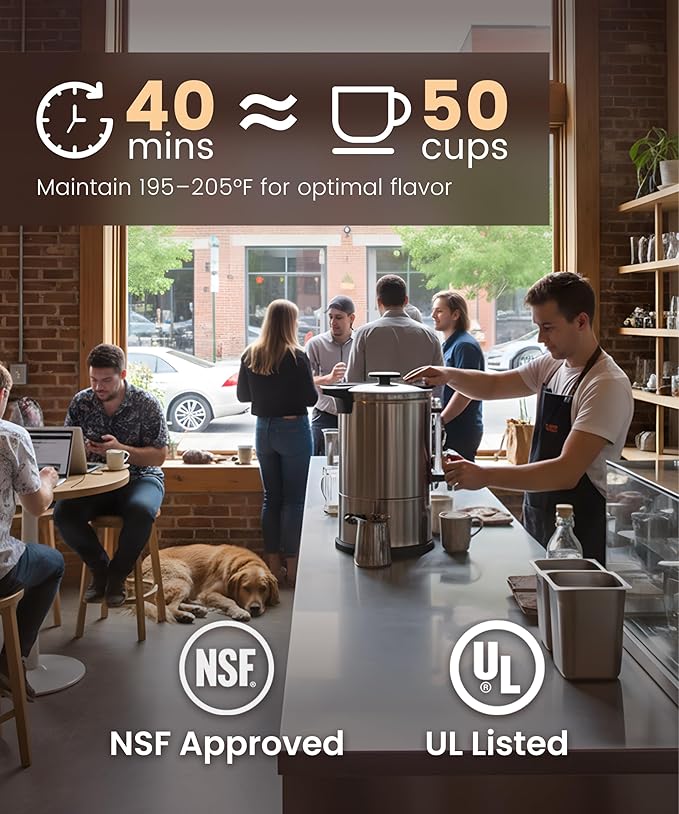 - ๐๐ข๐ ๐ก-๐๐๐๐ข๐๐ข๐๐ง๐๐ฒ ๐๐-๐๐ฎ๐ฉ ๐๐๐ฉ๐ข๐ ๐๐ซ๐๐ฐ ๐๐ฒ๐ฌ๐ญ๐๐ฆ: AZZO large coffee maker brews up to 50 cups (8L) of 5oz servings in just 40 minutes. Its adjustable capacity allows brewing from 15 to 45 cups for smaller groups or the full volume for large gatherings, while keeping coffee hot, fresh, and ready to serve long after brewing. Ideal for catering, weddings, offices, hotels, and special events.
