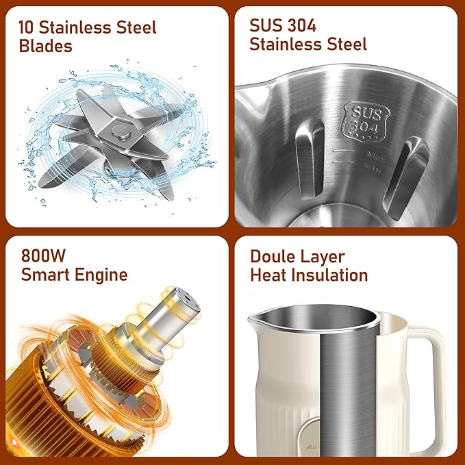 - FOOD-GRADE MATERIALS - This almond milk machine maker is made of high-quality, food-grade materials that are easy to clean and maintain (The body inside is made of SUS 304 stainless steel, the lid is made of food-grade plastic), ensuring that you can enjoy your homemade nut milk for years to come.