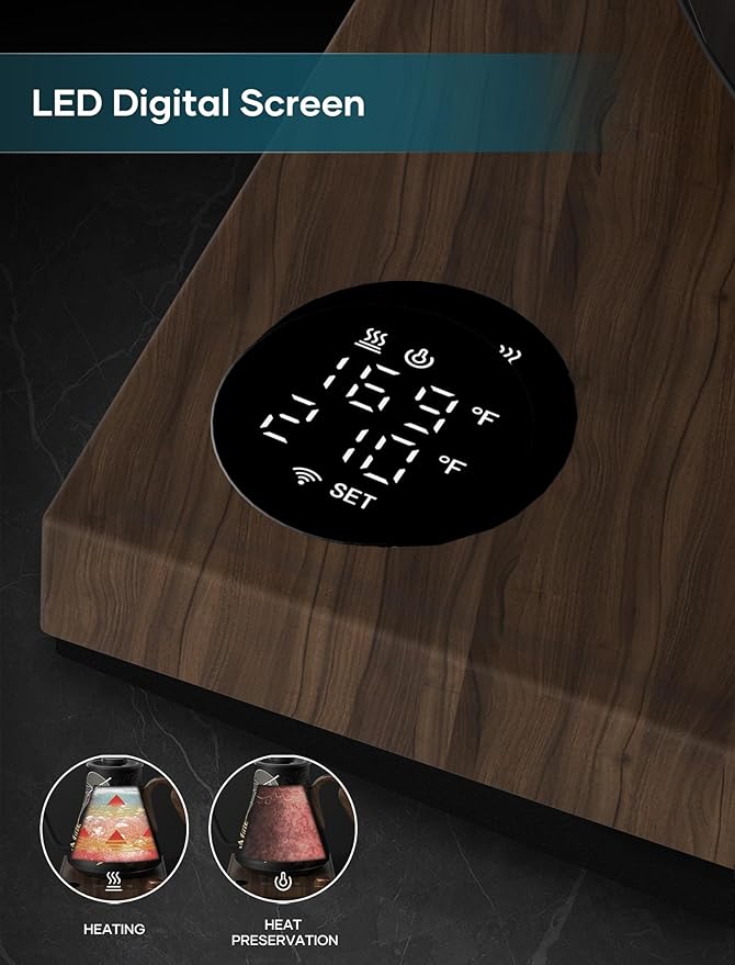 - ±1℉ Precise Temperature Control - The intelligent base of this gooseneck electric kettle auto-adjusts heating power for pinpoint accuracy. From pour-over coffee at 205°F to green tea at 176°F, enjoy barista-quality flavor every time.