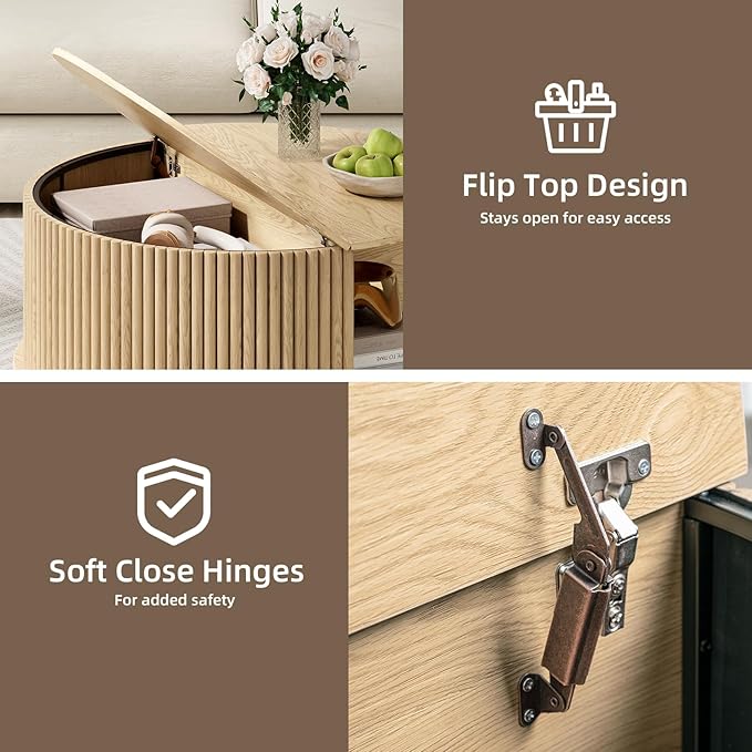 - Ample Hidden Storage with Lift Top: This lift top coffee table features a flip-top design that opens to a spacious hidden compartment, making it the perfect storage coffee table for books, remotes, and daily items. Keep your living room organized while enjoying quick and easy access to essentials
