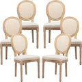 Vintage French Country Dining Chairs Set of 6, Rattan Dining Chairs with Solid Wood Legs, Beige Upholstered Dining Chair, Sillas para Comedor, Kitchen & Dining Room Chair (Beige, Rattan, 6Pcs)