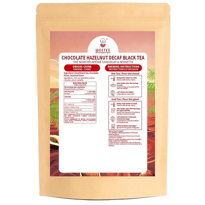 - 【Order with Confidence】50 Decaffeinated Chocolate Hazelnut Black Tea Bags (unbleached and compostable) come packed in a resealable kraft bag. Questions? Contact us anytime—we’re here to help