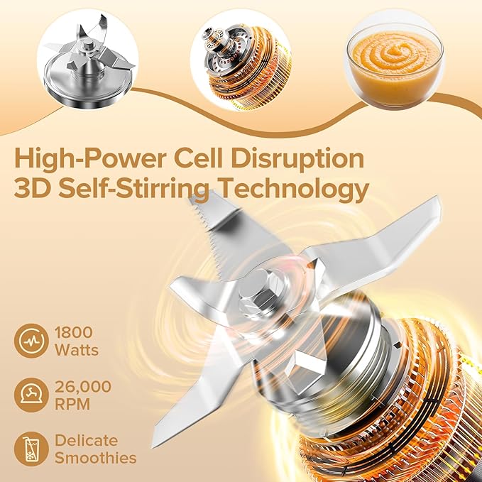 - Powerful Performance: 1800W high-power motor with 26,000 RPM ultra-high speed effortlessly crushes ice, nuts, and other hard ingredients.