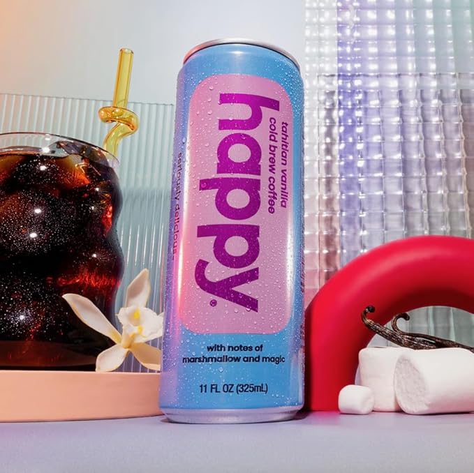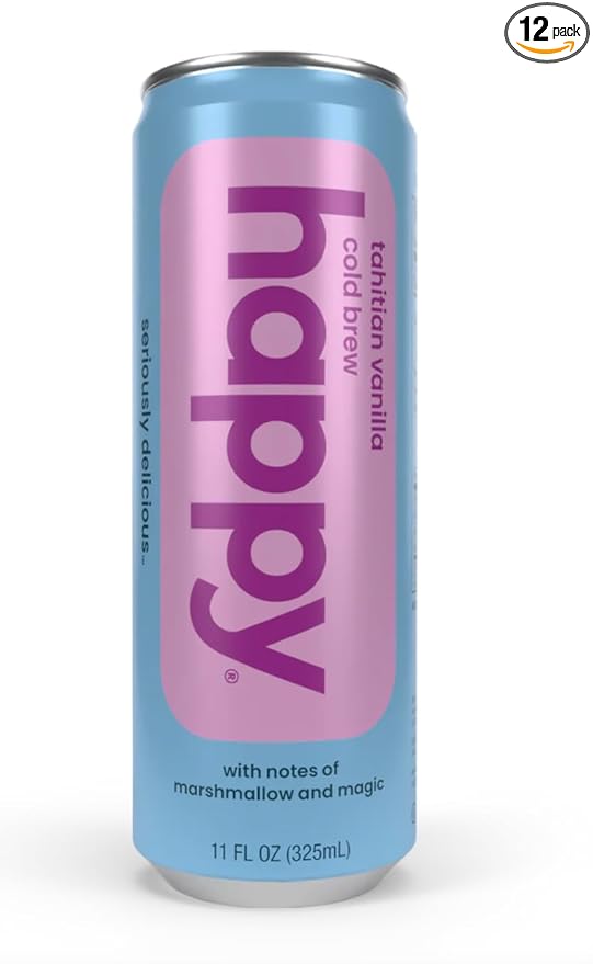 - seriously delicious: level up your coffee game with happy coffee canned tahitian vanilla cold brew, thoughtfully sourced and expertly blended with notes of marshmallow and magic. lightly sweetened with real sugar - only 80 calories.