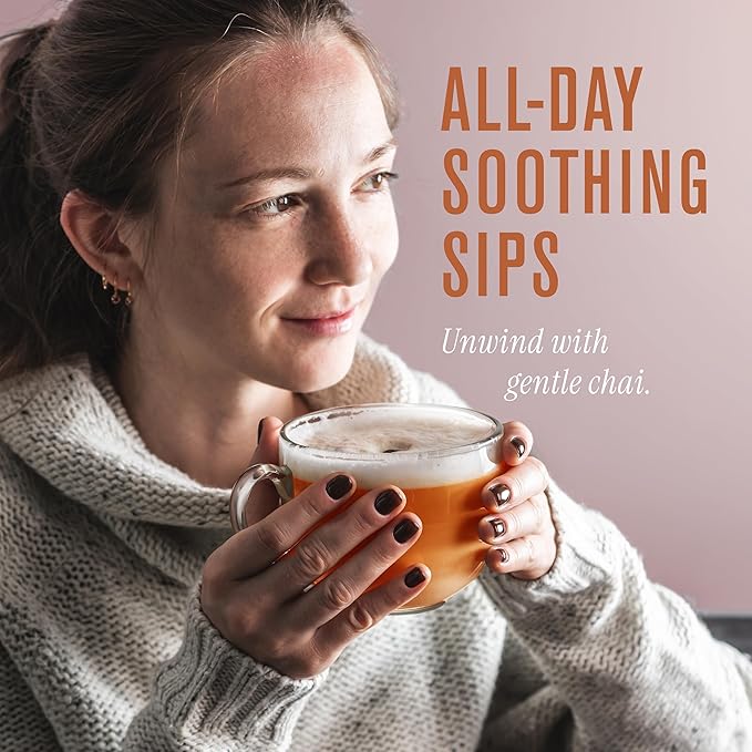- Caffeine-free chai indulgence: rooibos delivers mellow body and antioxidants; warming spices support digestion & balance; soothing chai tea latte you can enjoy any time without jitters or crash