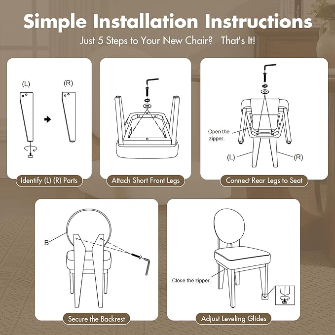 - Easy Assembly & Low-Maintenance Design. Enjoy a hassle-free setup. The natural wood grain texture of the walnut-finished legs is not only beautiful but also easy to clean—simply wipe with a damp cloth. The fixed seat cushion ensures no shifting, for carefree daily use and effortless upkeep