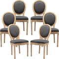 French Country Dining Chairs Set of 6, Grey Round Back Dining Chairs with Linen Upholstered Seat, Solid Wood Legs, Farmhouse Kitchen & Dining Room Chairs, Sillas De Comedor (Gray, 6Pcs)