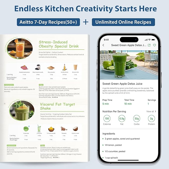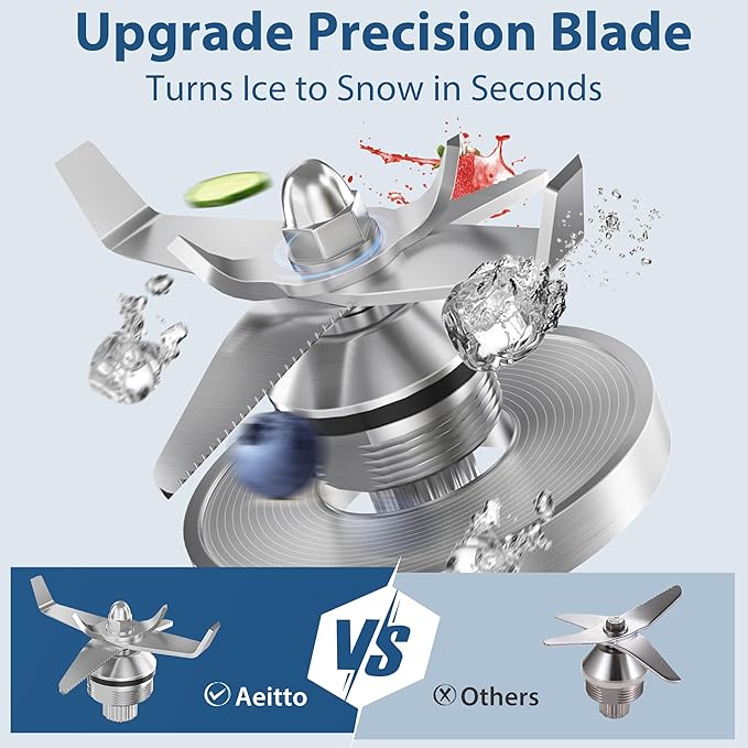 - 1800W Maximum Power: Aeitto blender with the 1800W peak power delivers high performance. It effortlessly handles professional tasks—from smoothies and soups to nut butters—in seconds, minimizing wait time while preserving ingredients' nutrients. The blenders for kitchen is sturdy and durable, easily conquering the daily challenges of intense cooking.